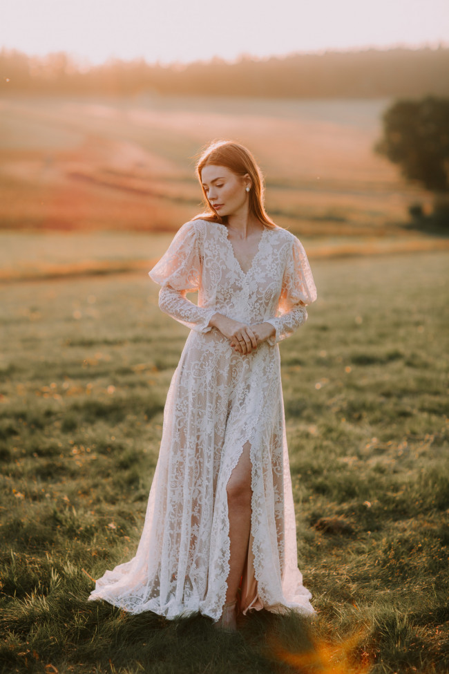 Czy długi rękaw w sukni ślubnej boho ogranicza lekkość?