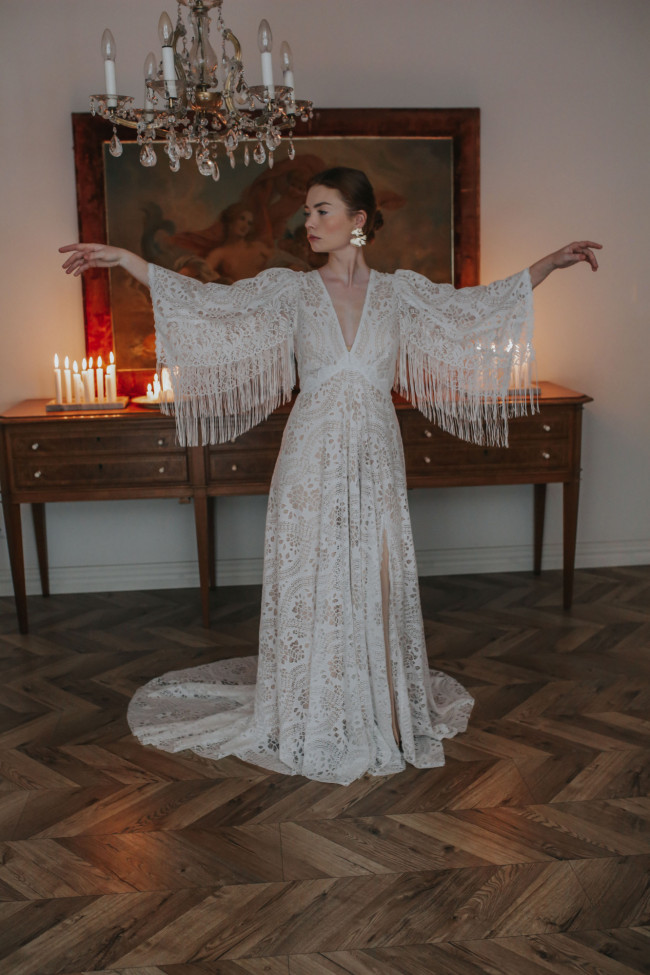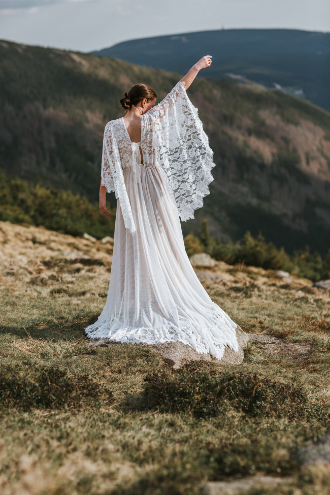 To jedno z najczęstszych pytań, jakie pojawia się przy wyborze sukni. W stylu boho odpowiedź brzmi: nie – pod warunkiem, że rękaw został odpowiednio zaprojektowany.