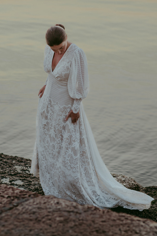 Warto zwrócić uwagę na jeden aspekt: jakość materiału widać dopiero w czasie. Dobra koronka nie sztywnieje, nie podrażnia skóry i nie traci swojego wyglądu. Dzięki temu suknie ślubne boho z długim rękawem prezentują się pięknie nie tylko na początku ceremonii, ale również podczas tańca, zdjęć o zachodzie słońca i spokojnych chwil pod koniec dnia.