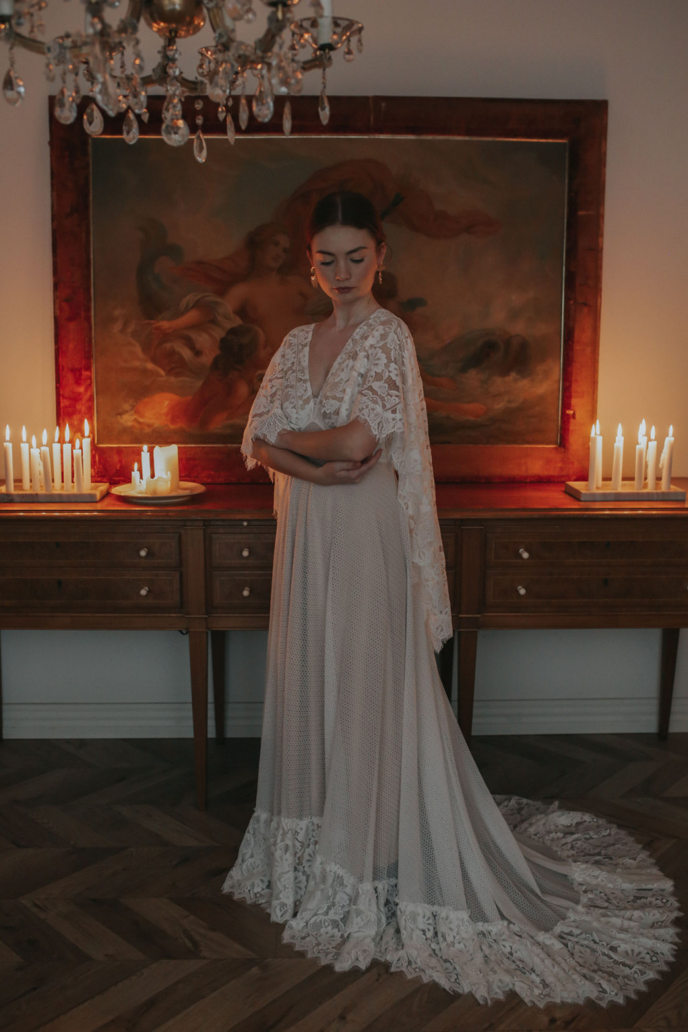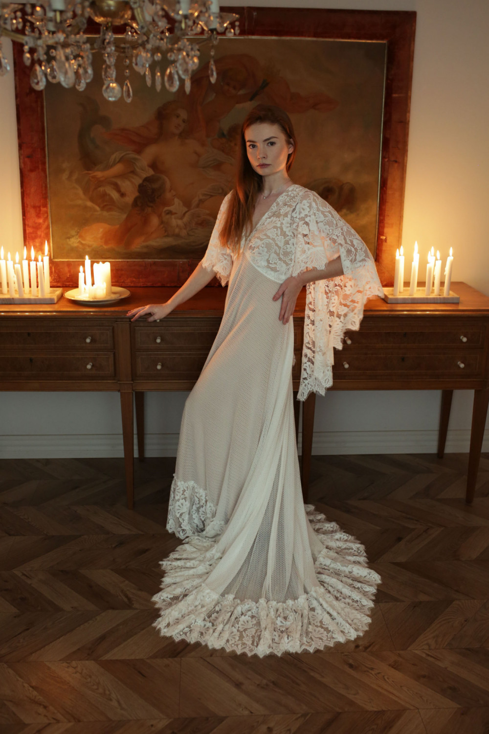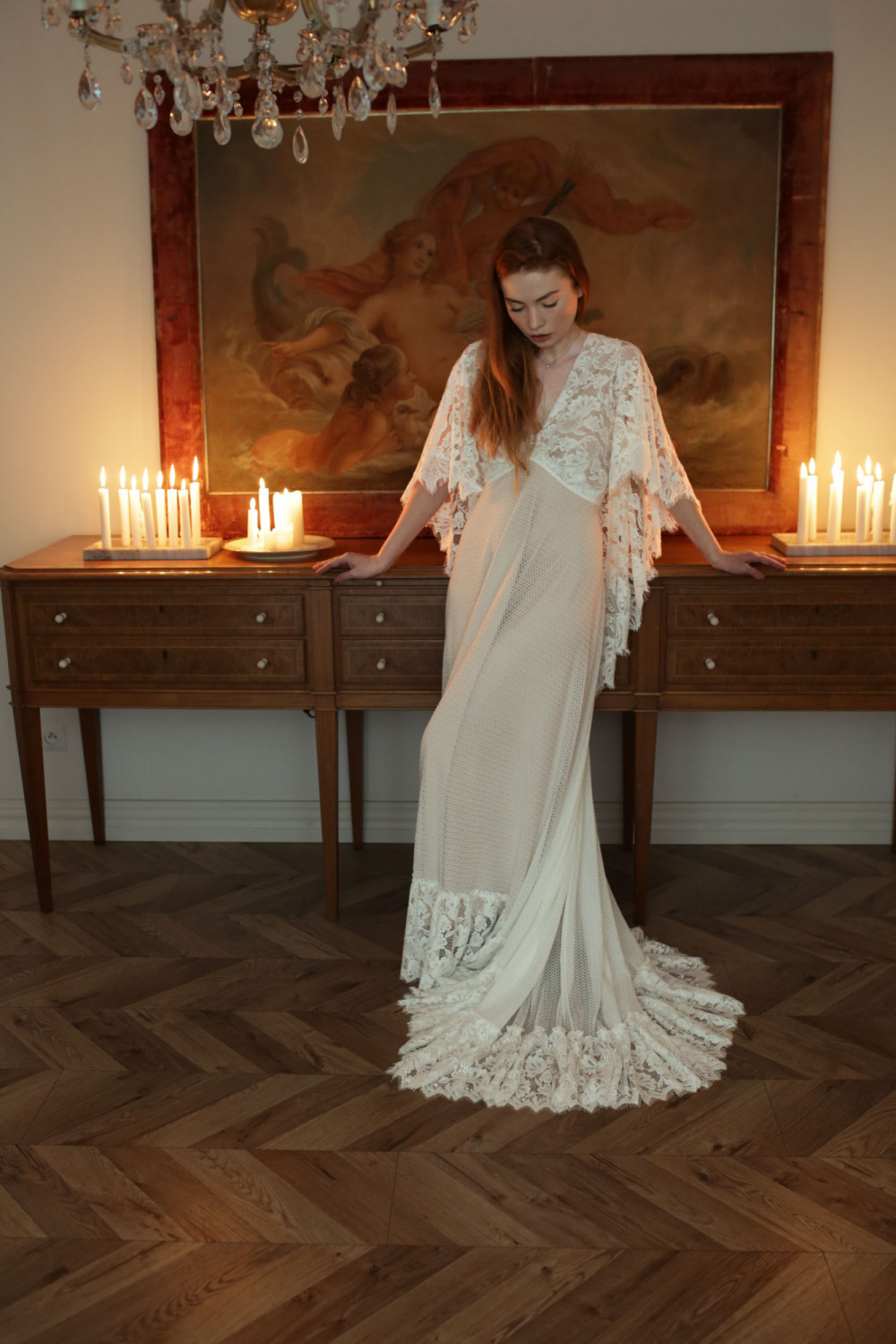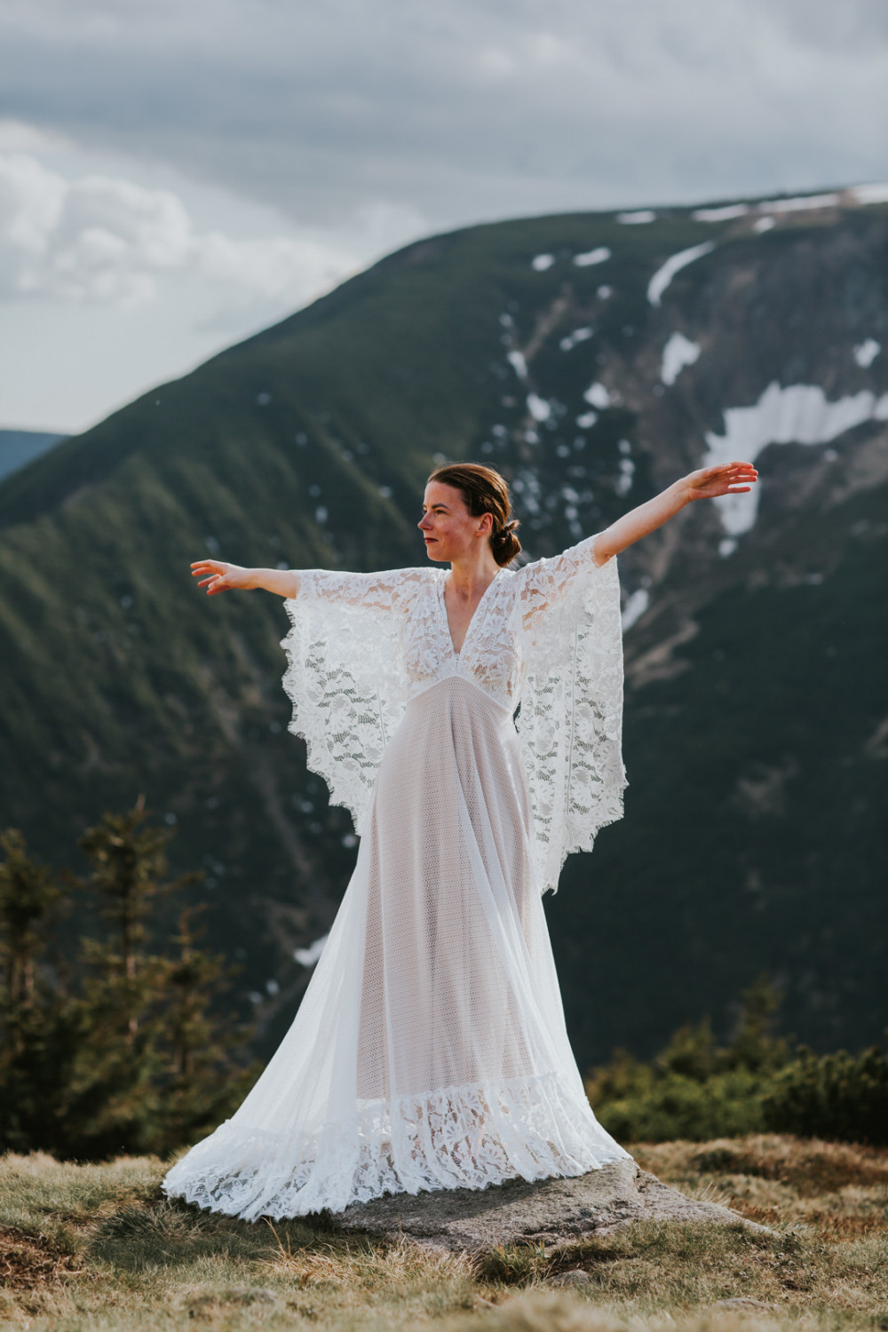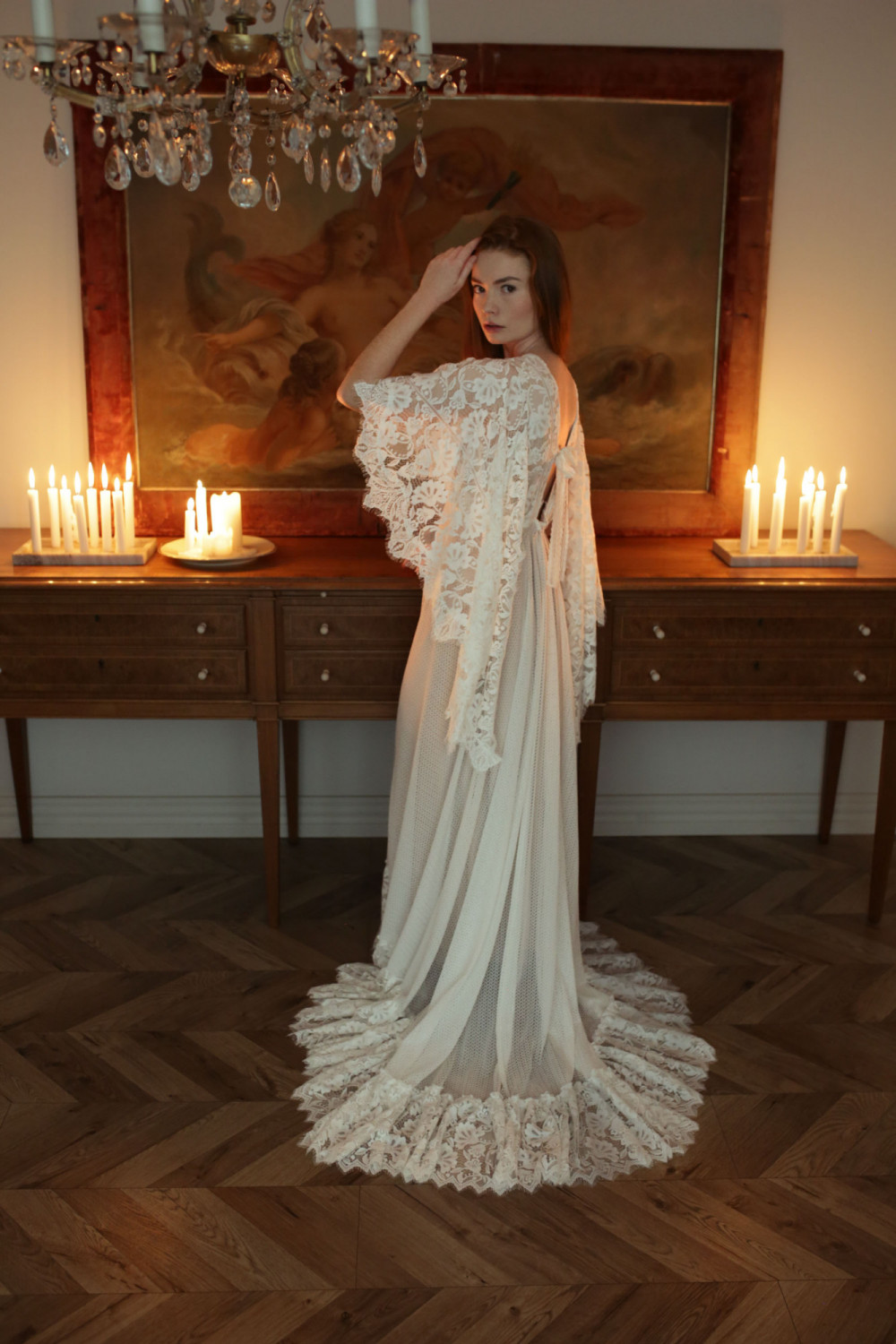 Suknia ślubna Julia to połączenie romantyzmu i artystycznej lekkości. Jej wyjątkowy krój z motylkowymi rękawamizachwyca subtelnym ruchem przy każdym geście, tworząc efekt niezwykłej miękkości i kobiecego wdzięku.