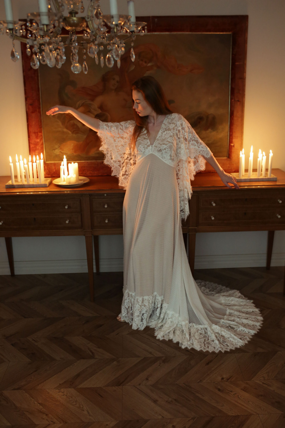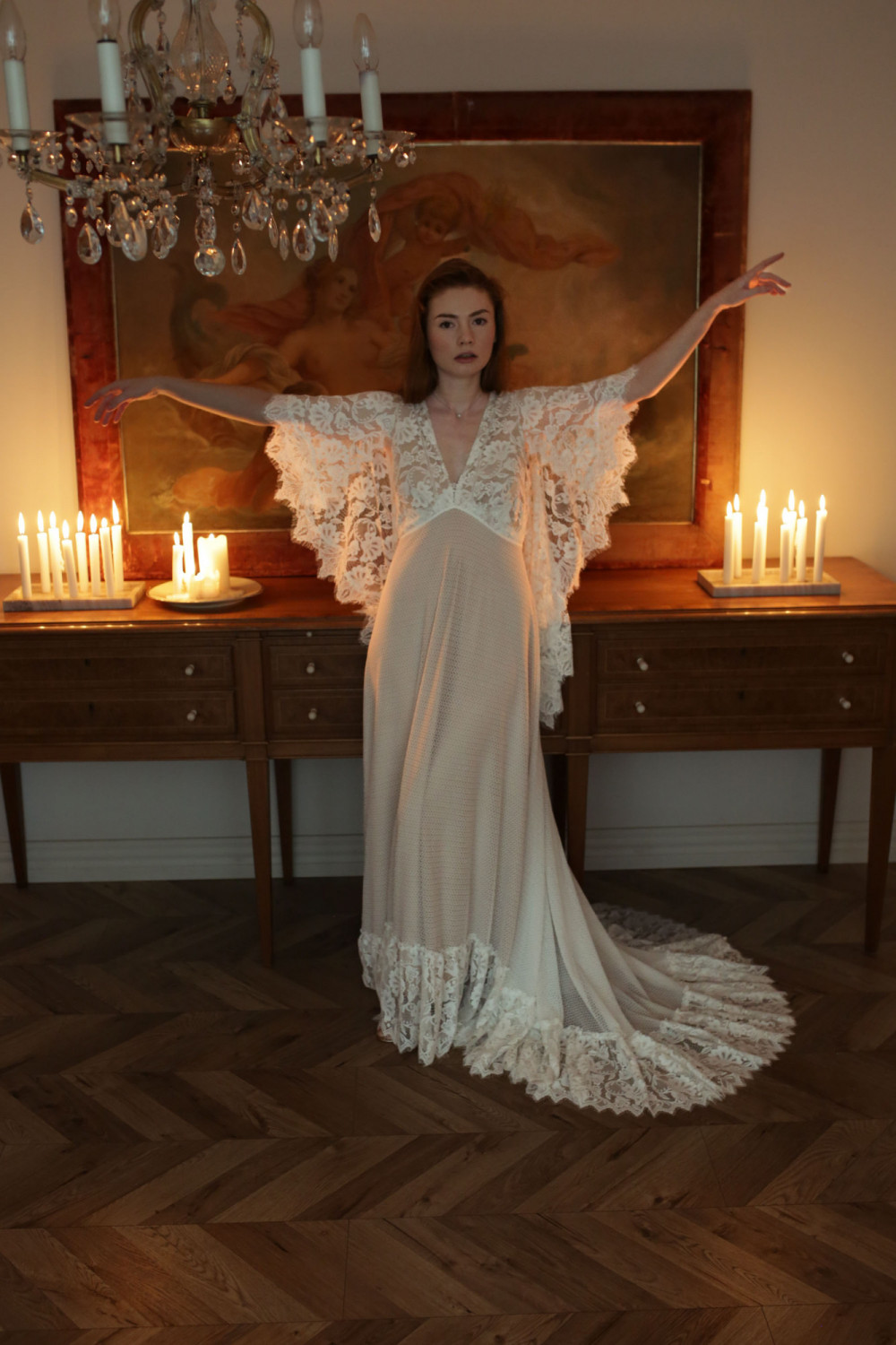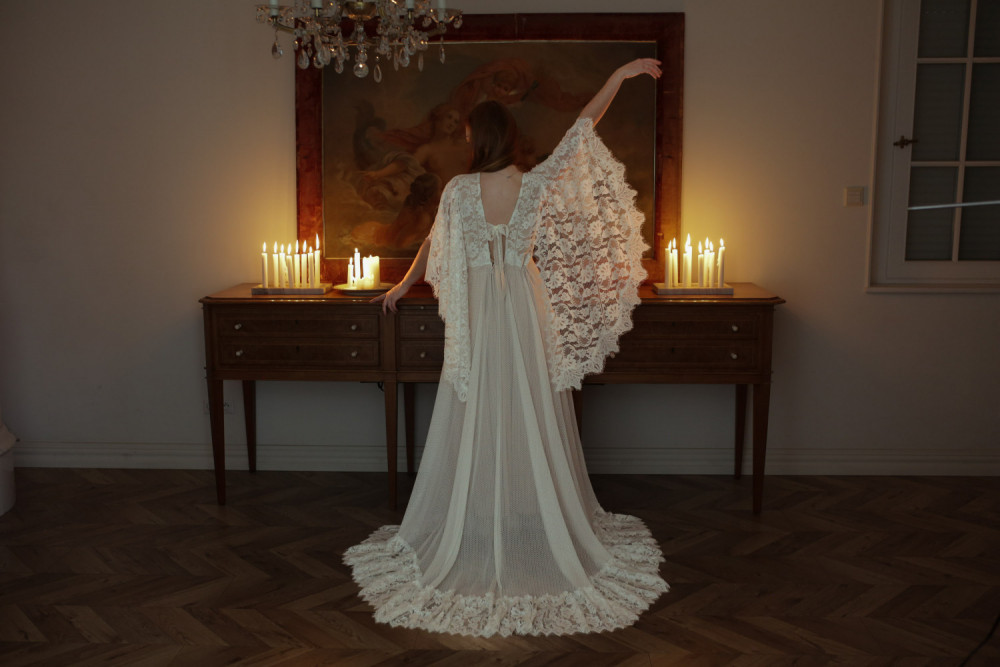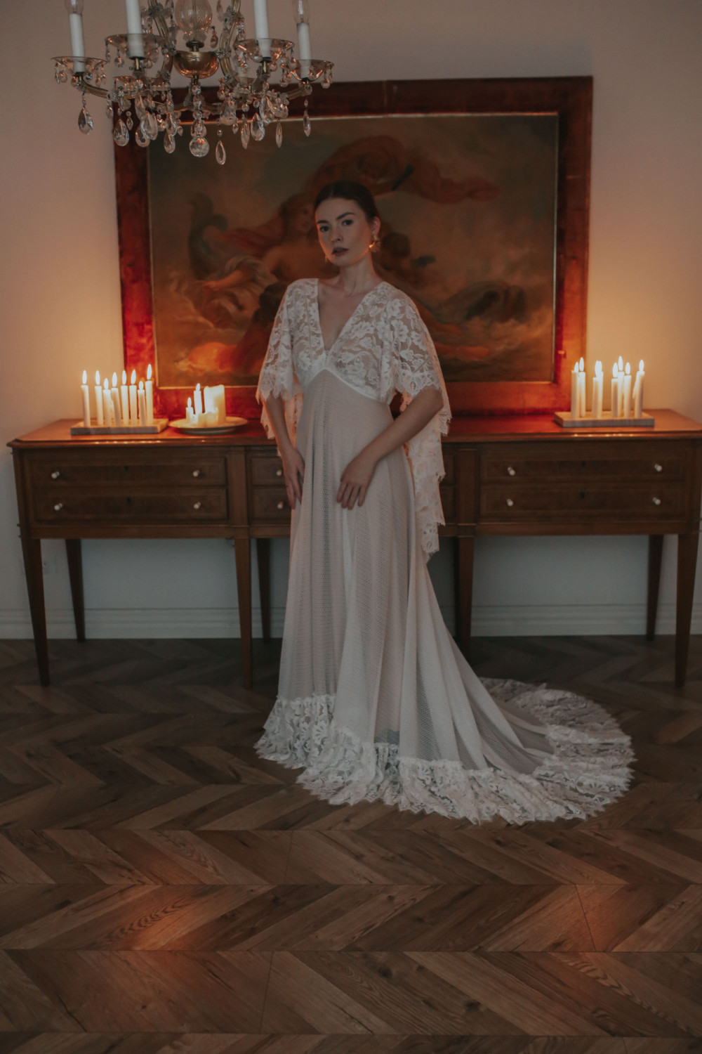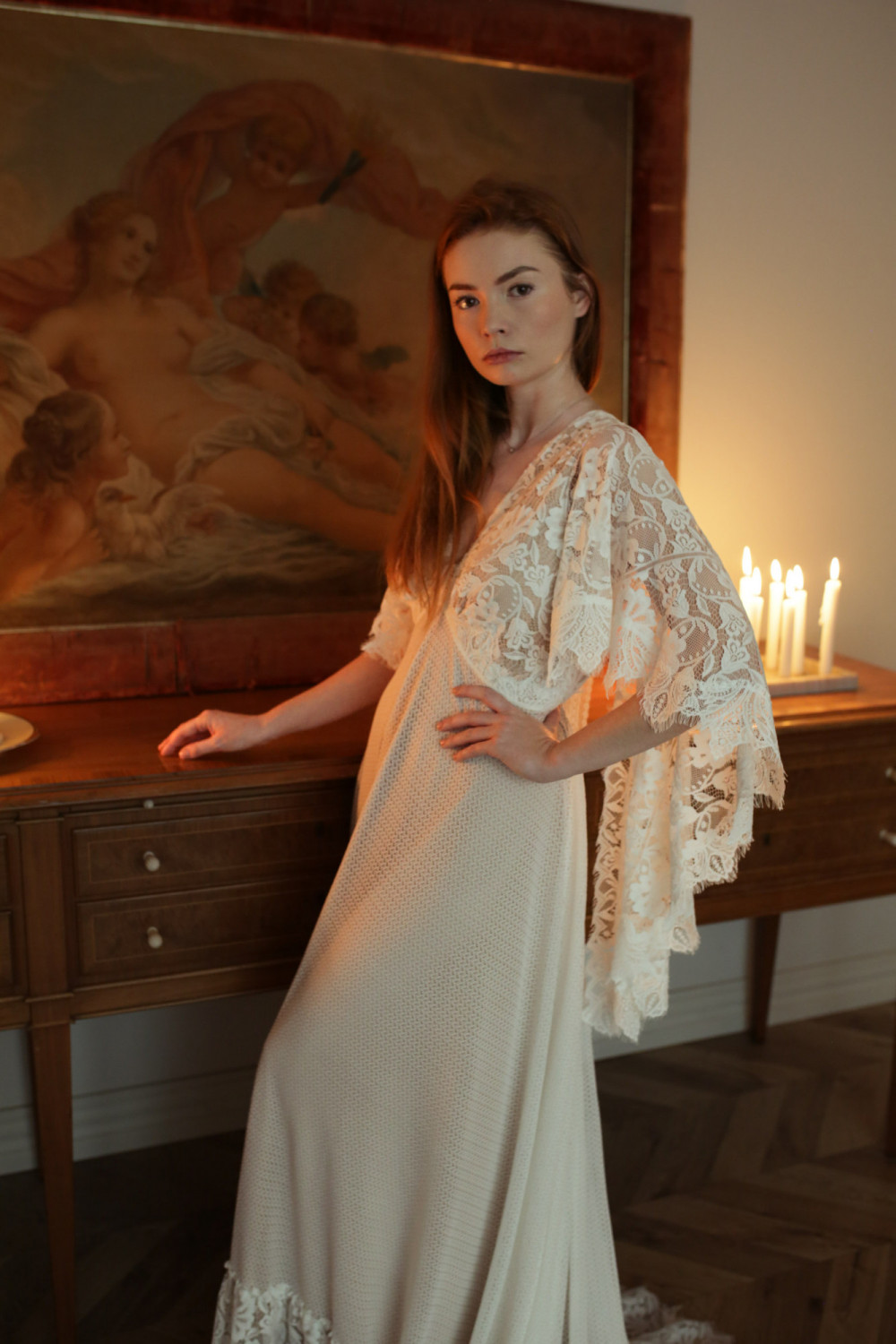 Suknia ślubna Julia to połączenie romantyzmu i artystycznej lekkości. Jej wyjątkowy krój z motylkowymi rękawamizachwyca subtelnym ruchem przy każdym geście, tworząc efekt niezwykłej miękkości i kobiecego wdzięku.