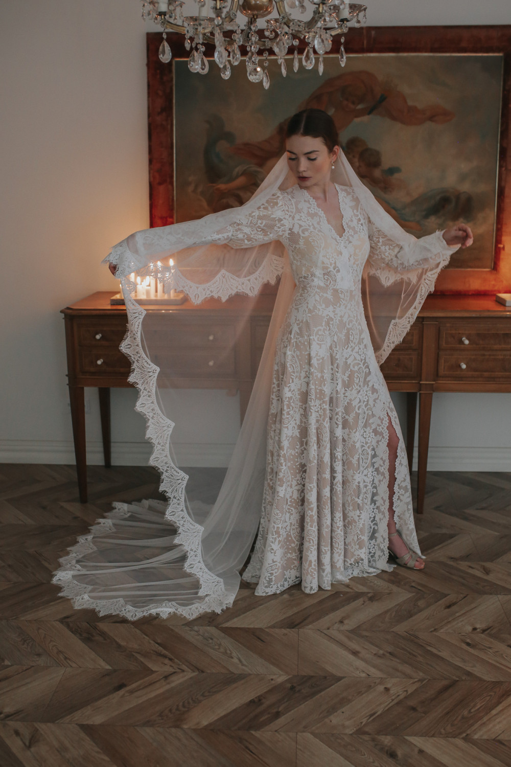 Suknia Wiktorian to połączenie romantycznej elegancji i klasycznego szyku, inspirowane delikatnością koronek z epoki wiktoriańskiej. Całość została uszyta z miękkiej, wysokogatunkowej koronki w subtelny kwiatowy wzór, która nadaje kreacji lekkości i wyjątkowego uroku.