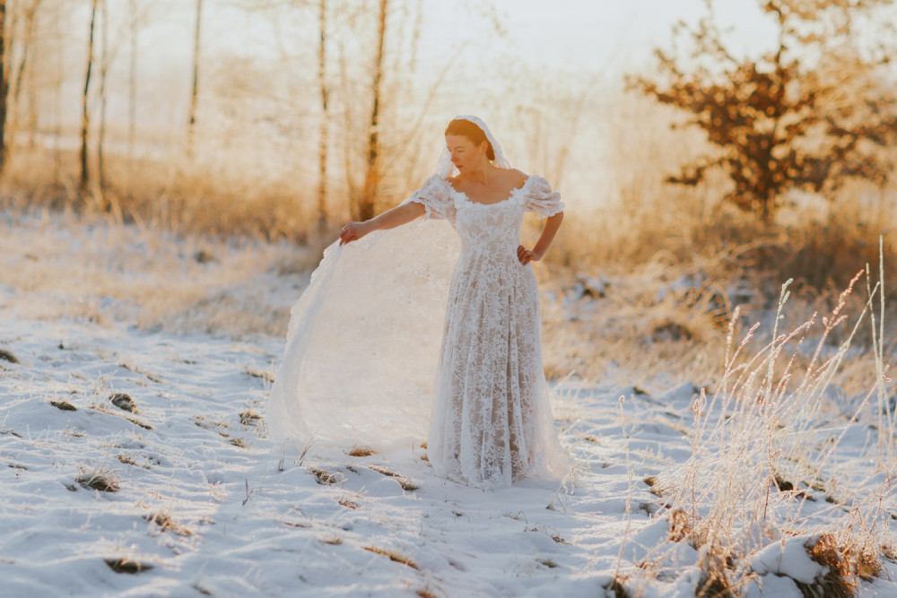 Koronkowa Suknia ślubna boho-Wschód Słońca