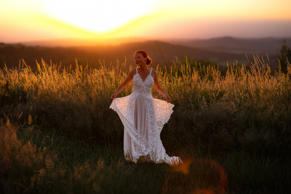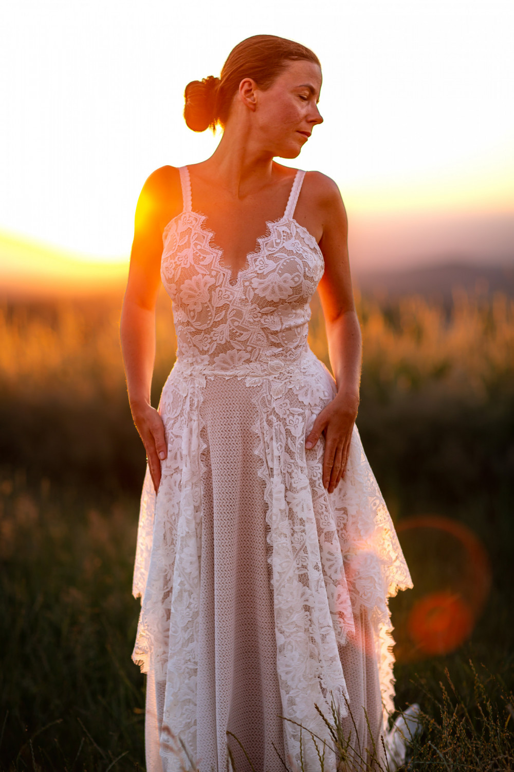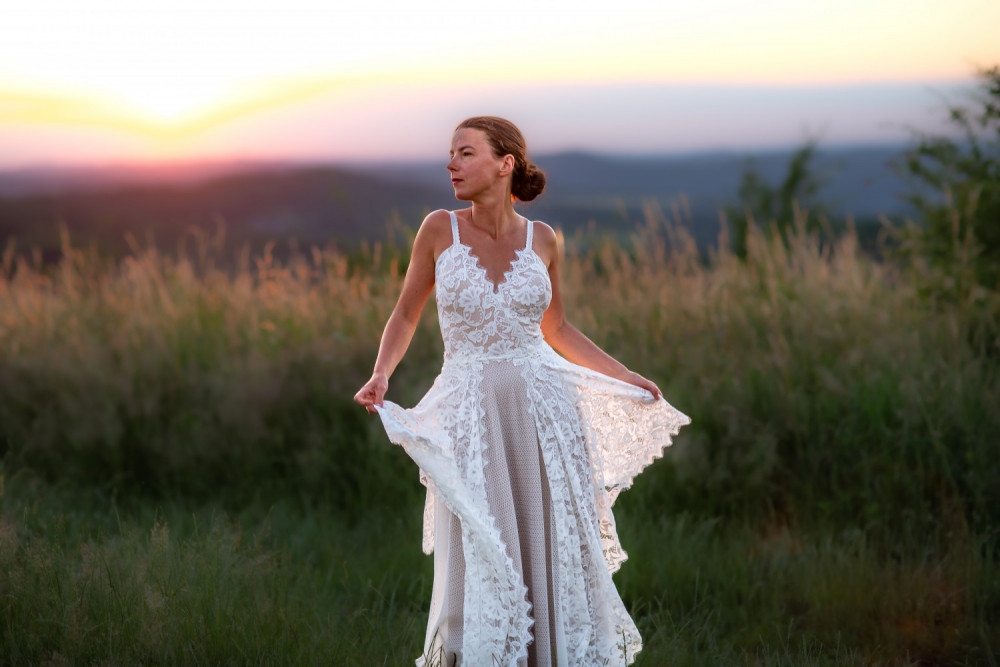 Suknia ślubna Summer to oda do letniej lekkości, swobody i romantyzmu. Jej subtelny krój oraz pełna wdzięku forma podkreślają naturalne piękno sylwetki, tworząc idealną propozycję dla panien młodych, które marzą o delikatnej, zmysłowej elegancji.