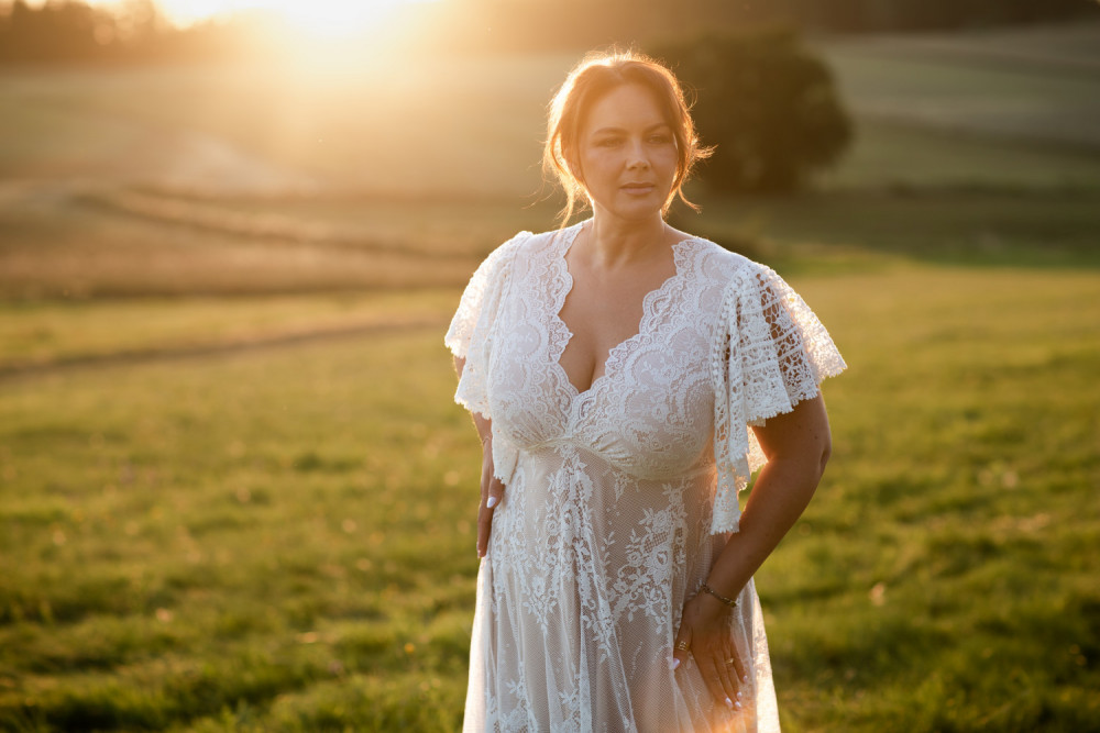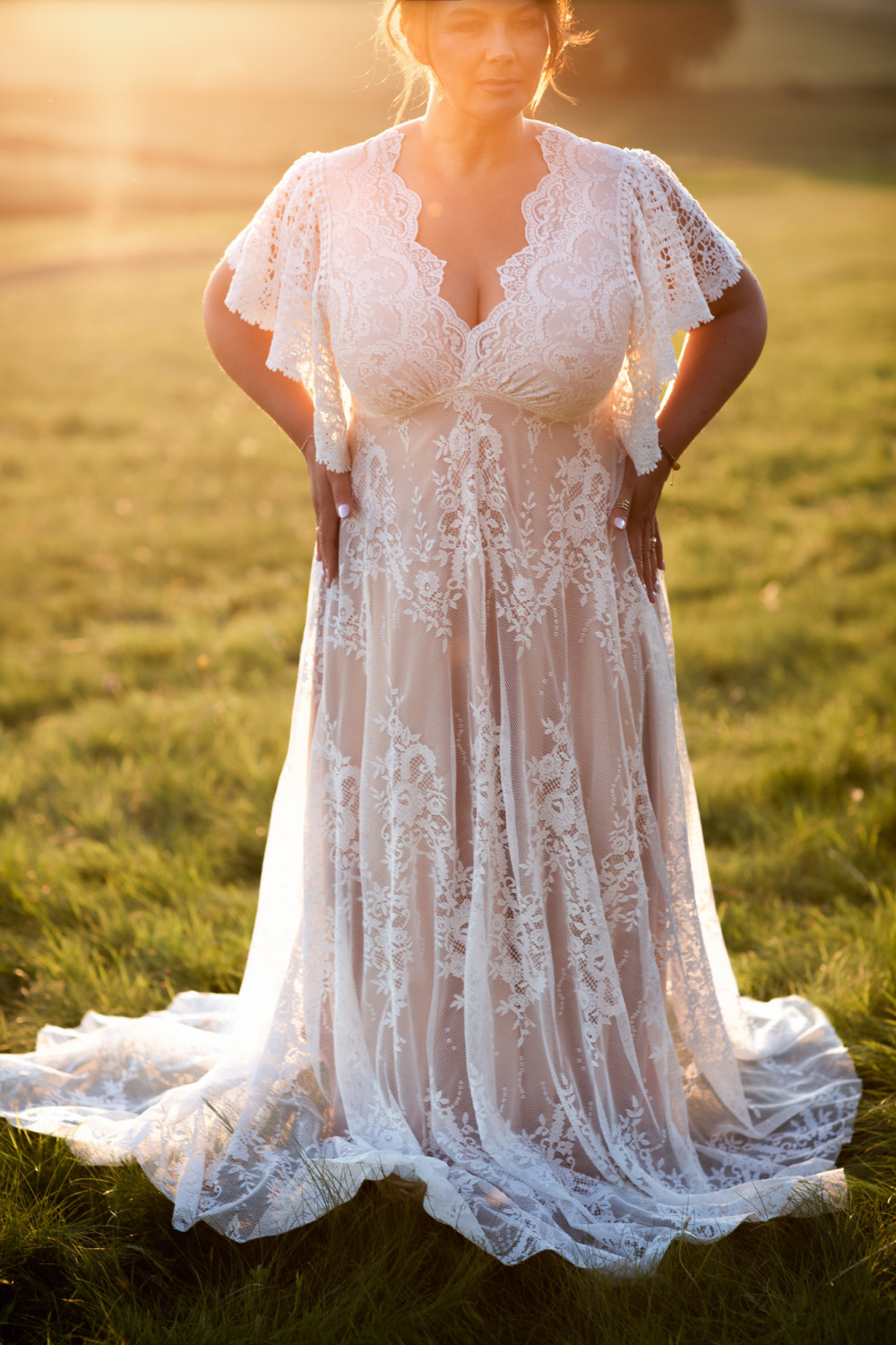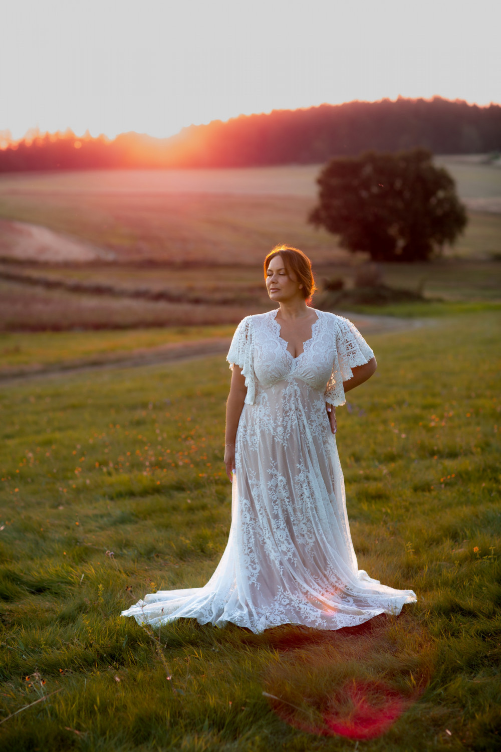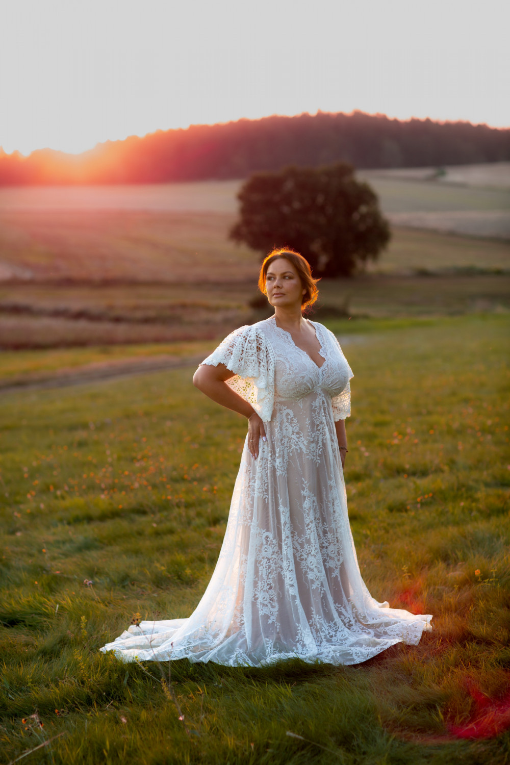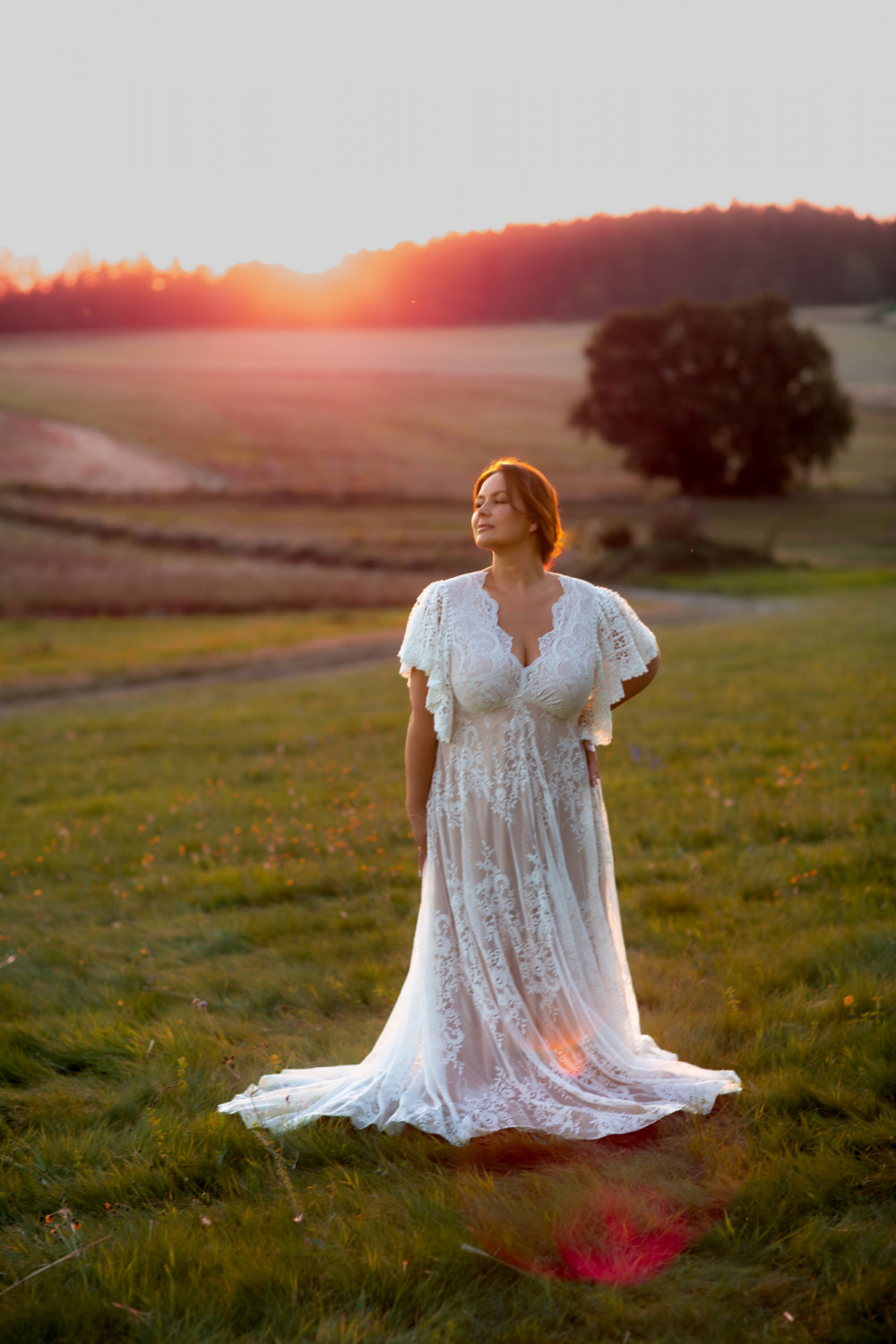 To suknia, która łączy romantyczny urok z wygodą i lekkością, idealna dla Panien Młodych ceniących naturalność, swobodę i klasyczną elegancję.
