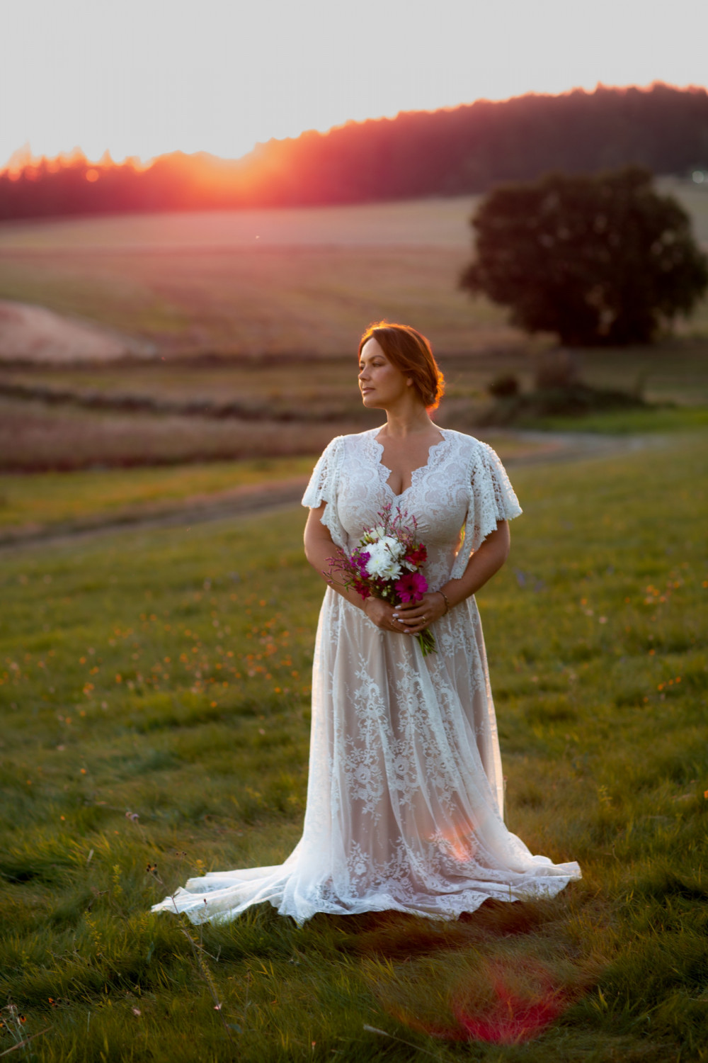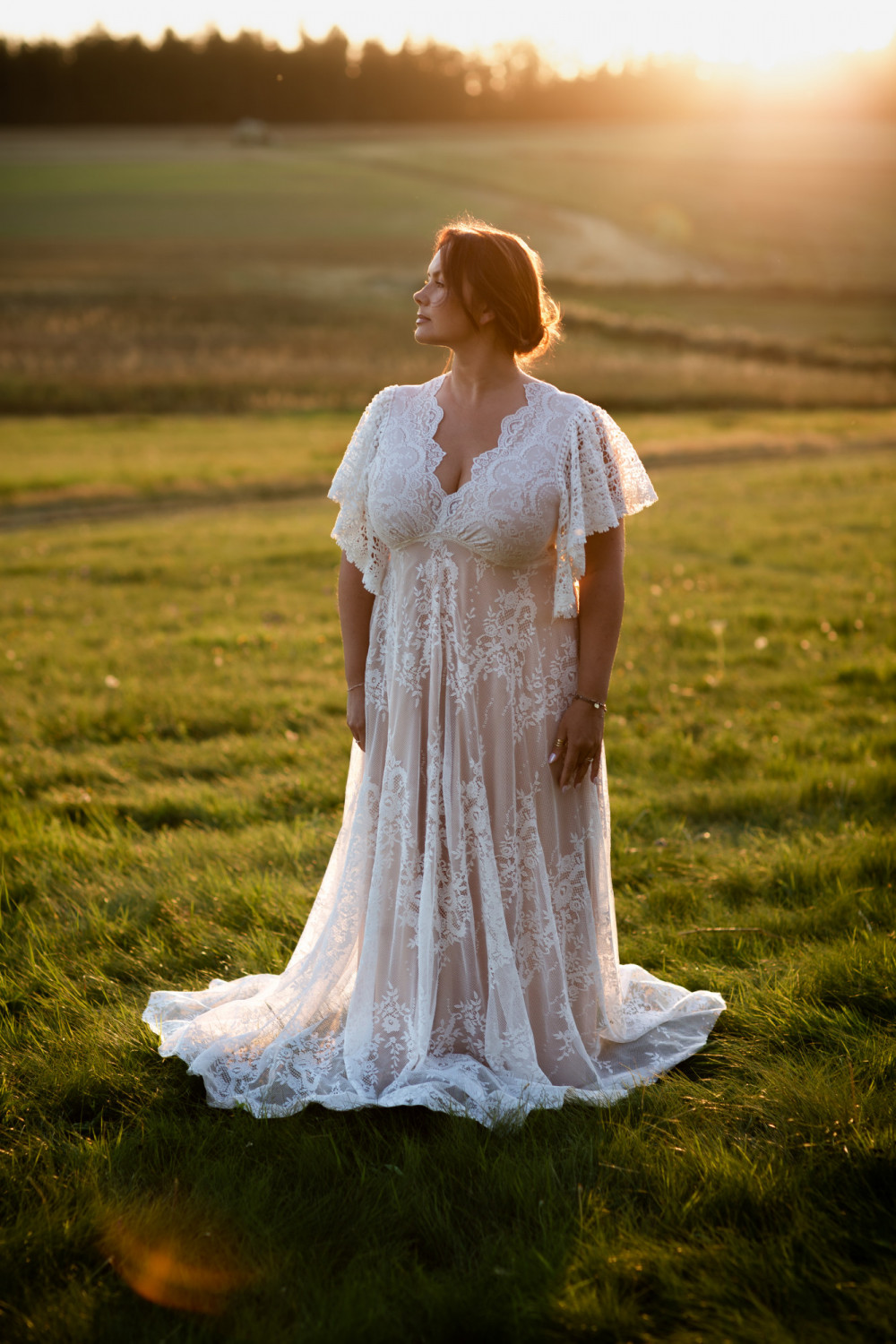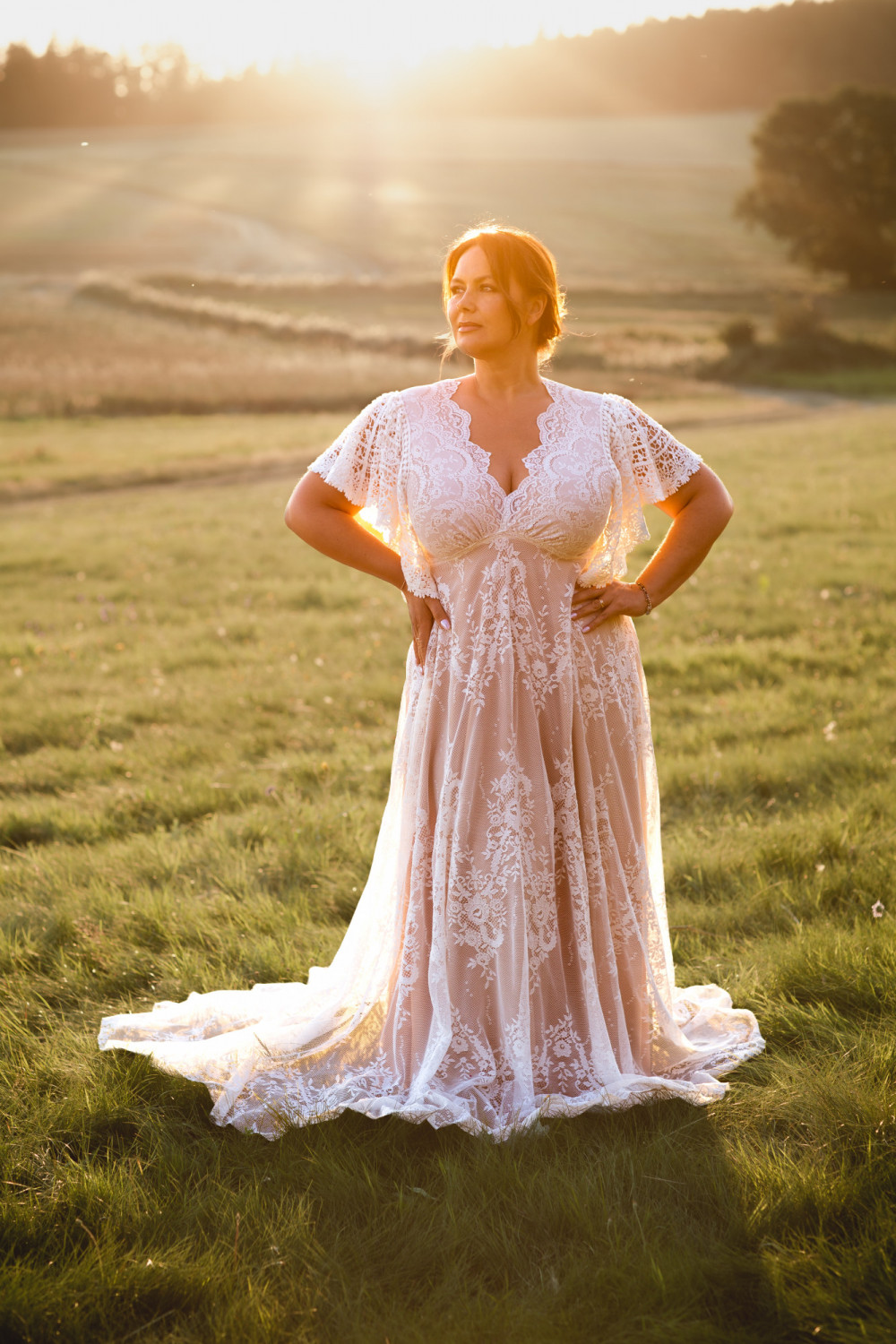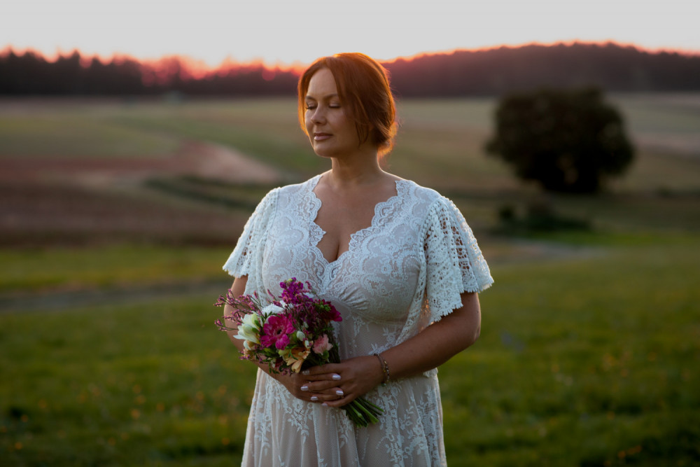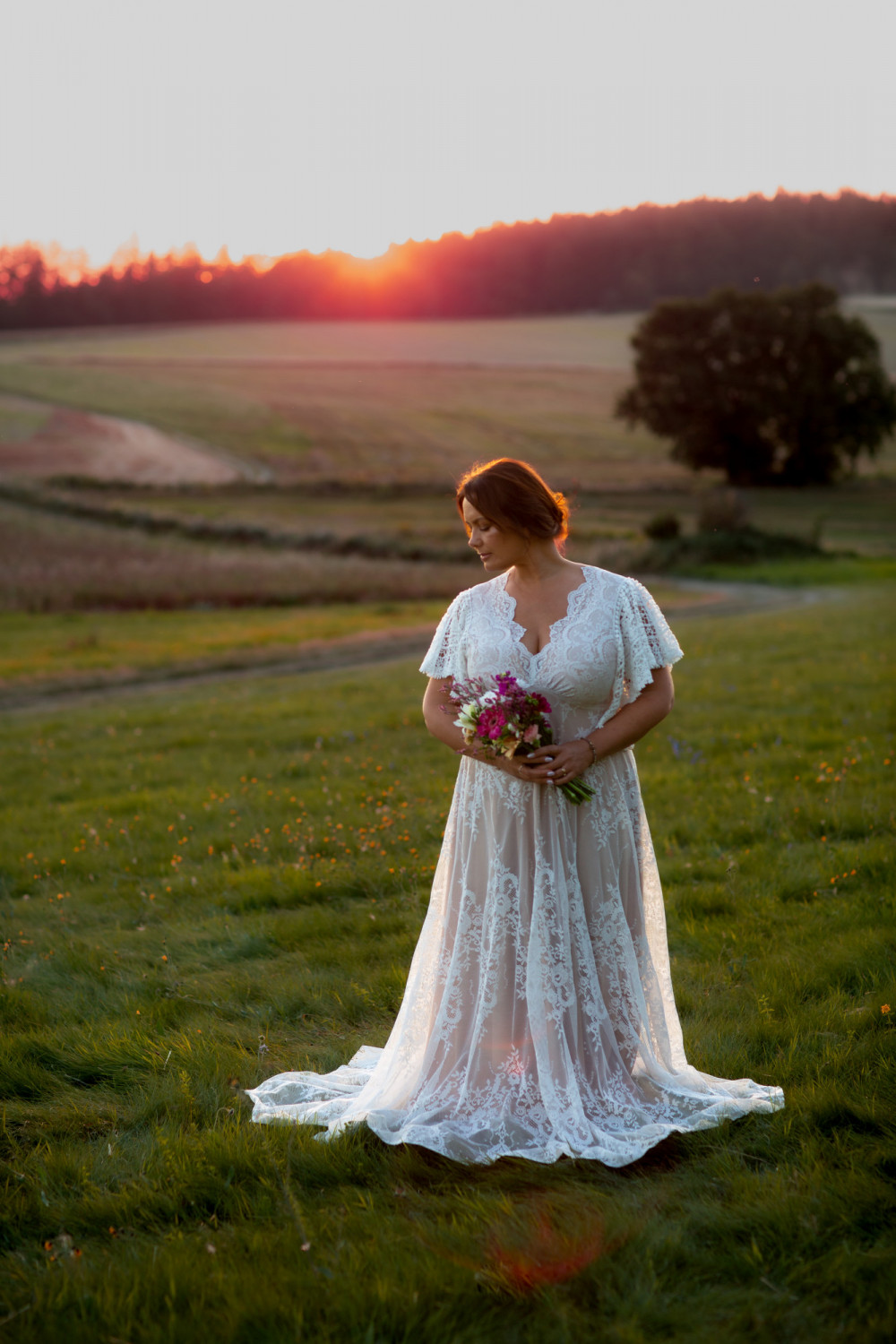 To suknia, która łączy romantyczny urok z wygodą i lekkością, idealna dla Panien Młodych ceniących naturalność, swobodę i klasyczną elegancję.