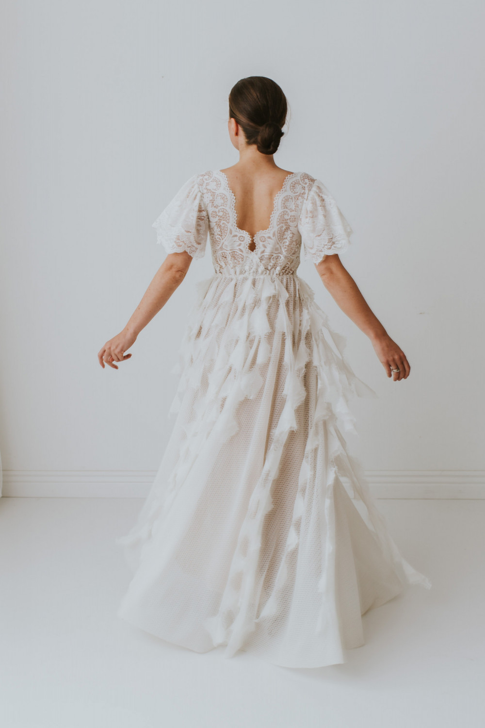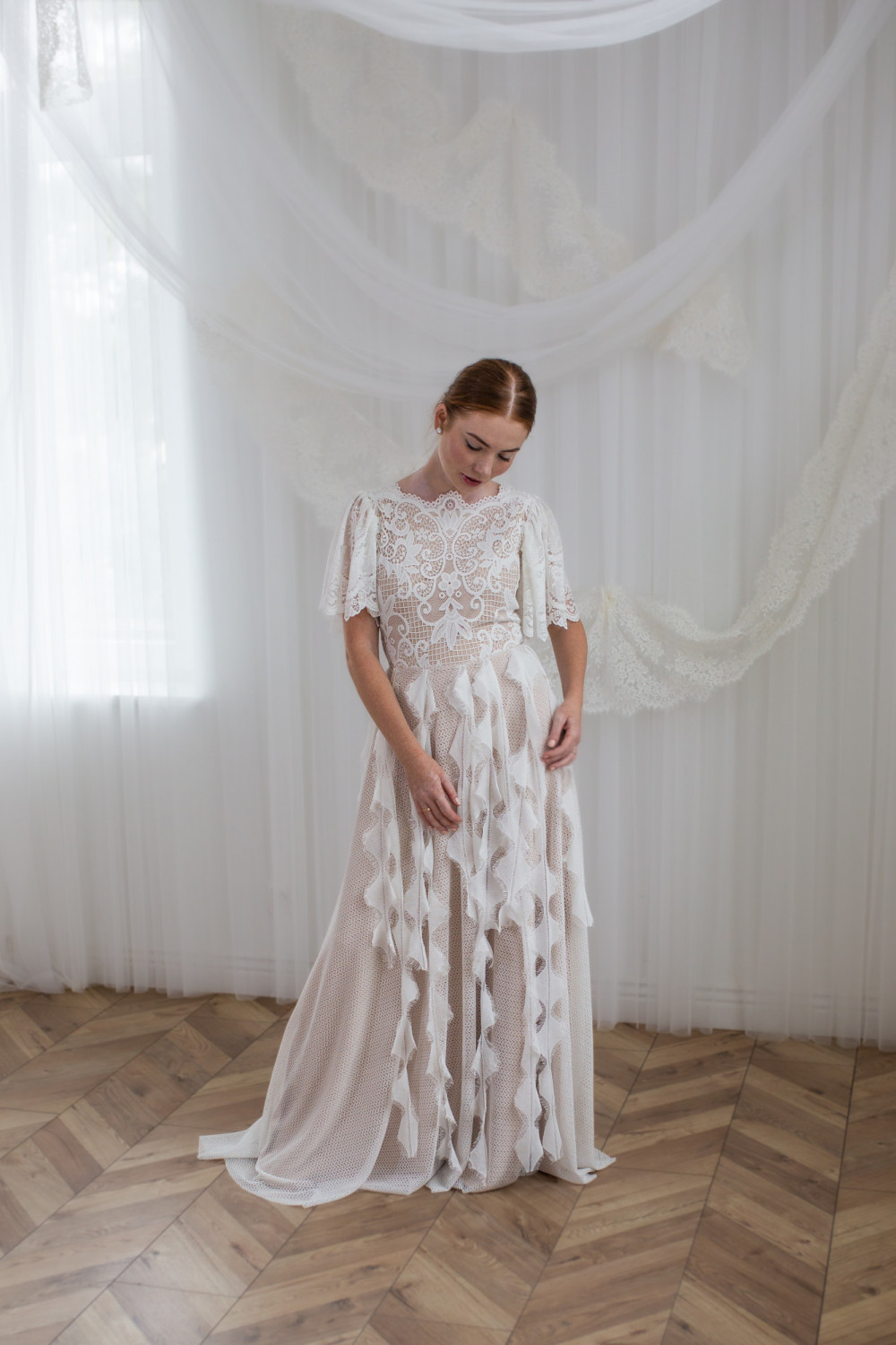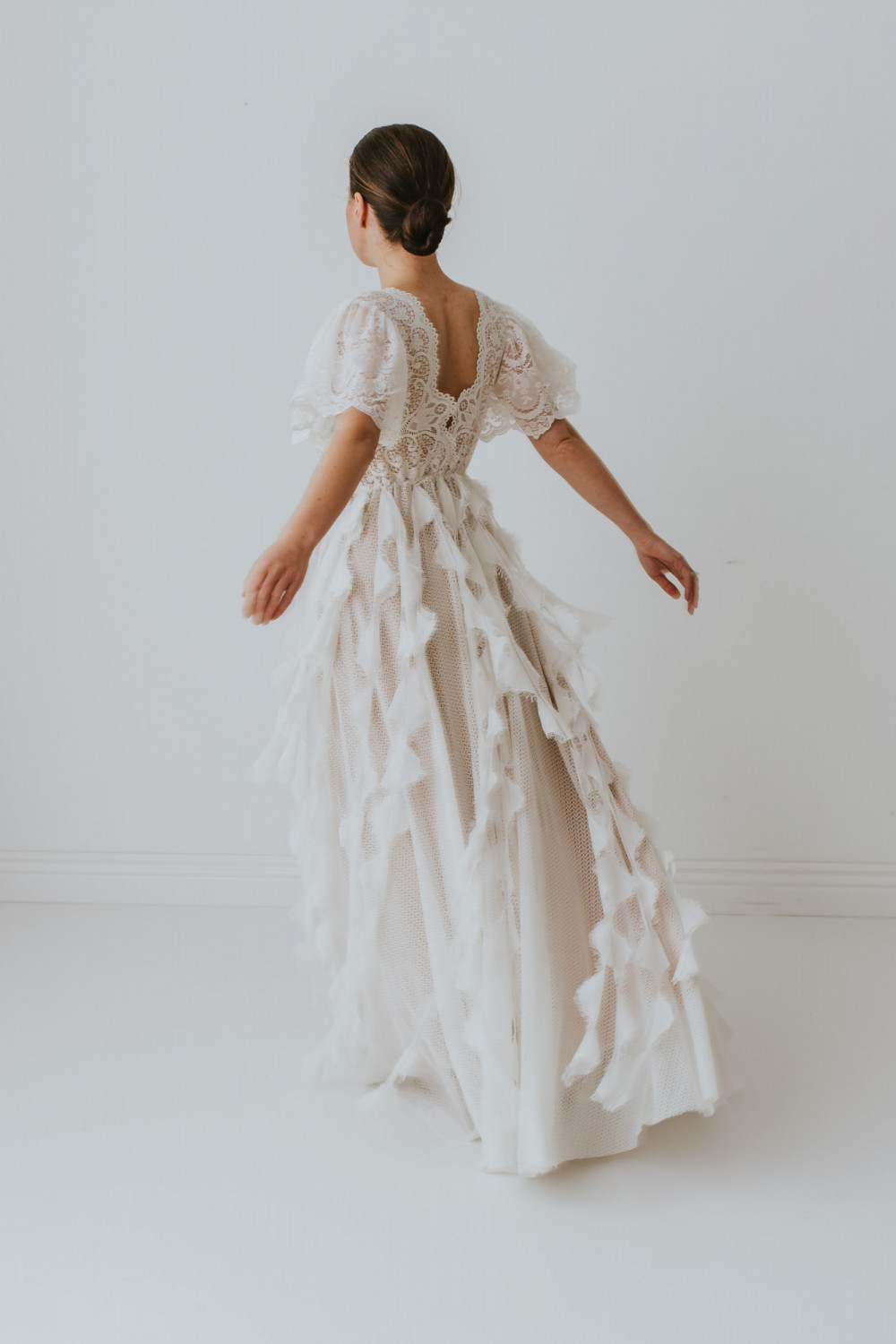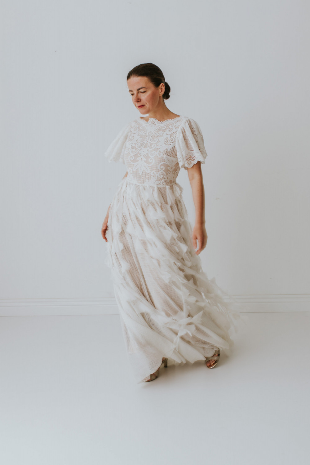Suknia ślubna Piórkowa – lekkość ruchu i koronkowa finezja