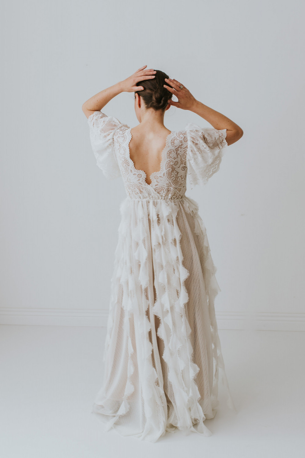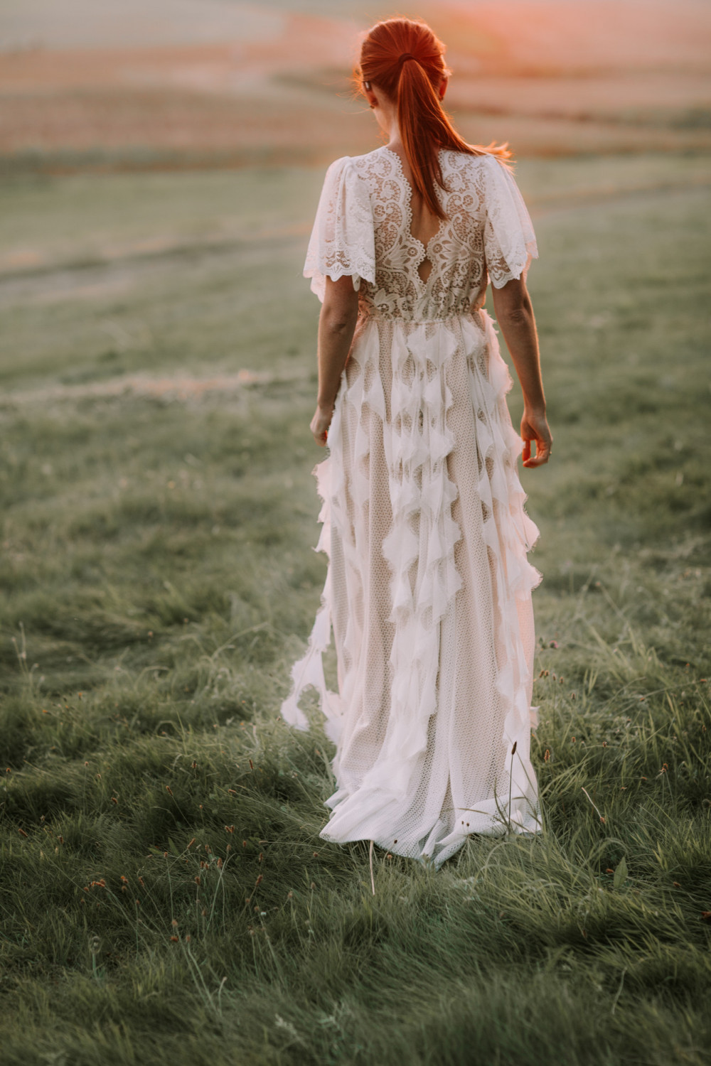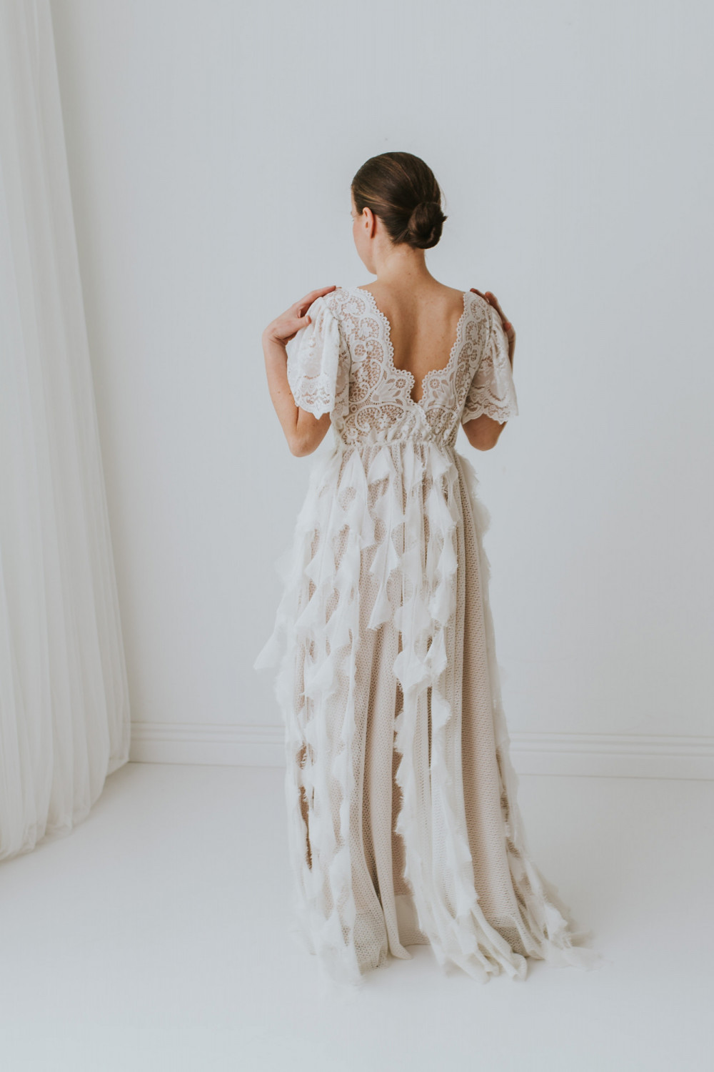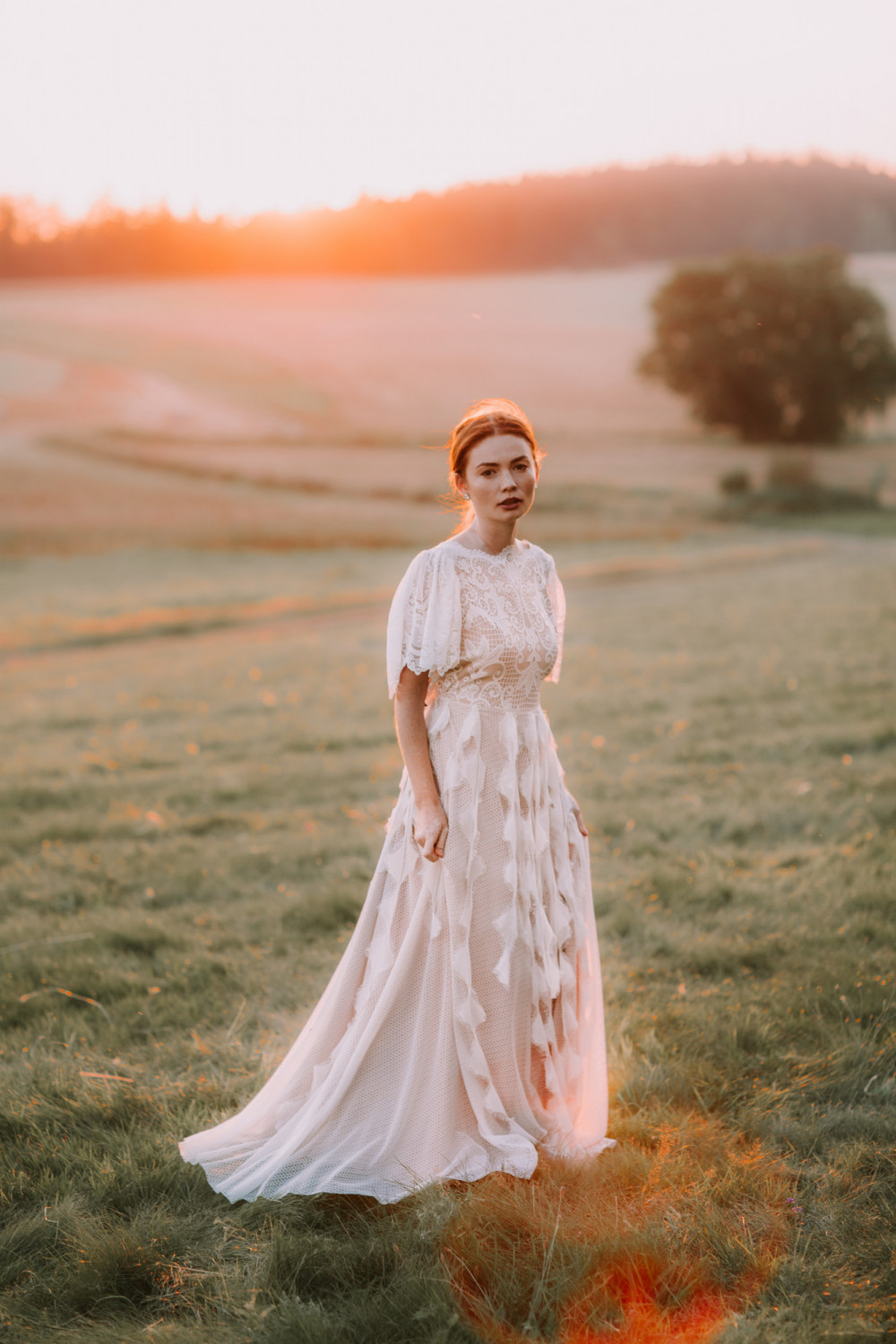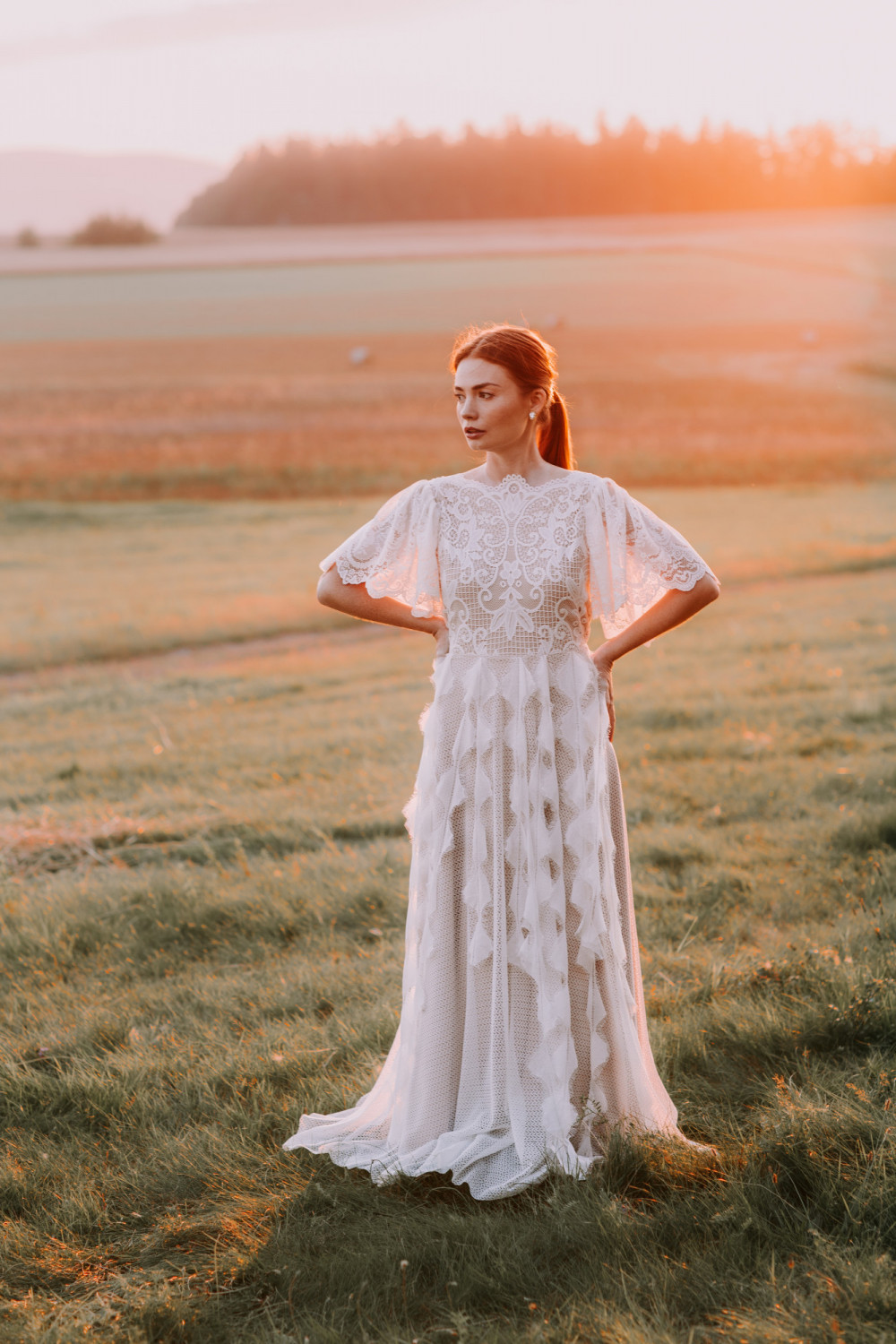 Suknia ślubna Piórkowa – lekkość ruchu i koronkowa finezja